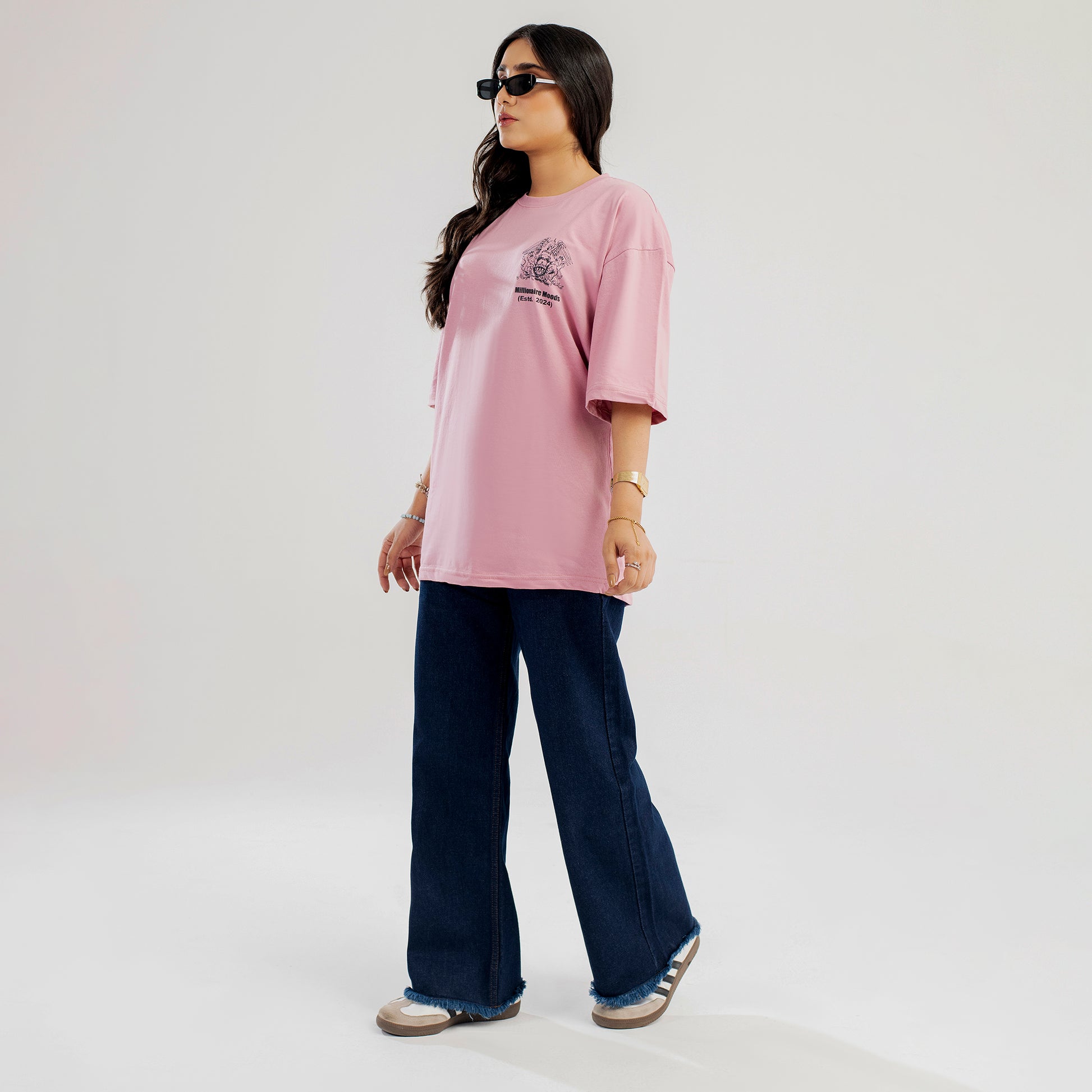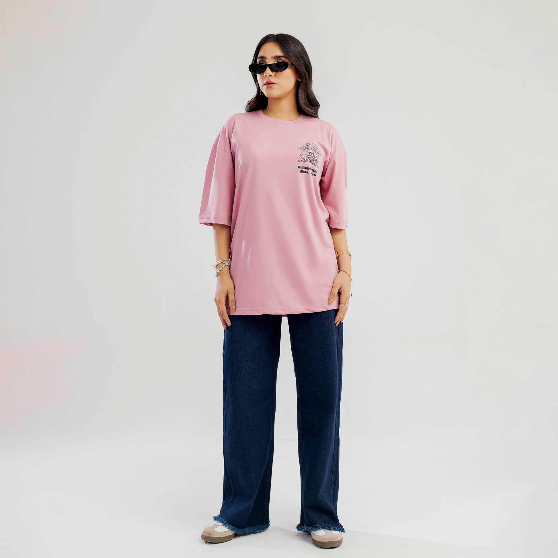 [F] Model: 5’2”, wearing size M (Shirt) & 30” waist (Jeans)